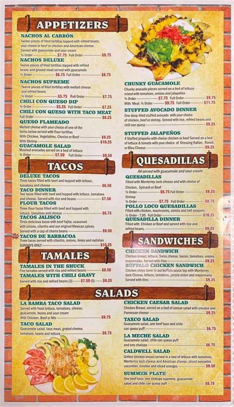 la bamba mexican restaurant menu Mischievous Logbook Picture Library