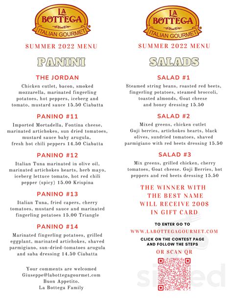 Web in house | la bottega plainview our menu is prepared fresh, served hot and available for delivery or pick up. Web $12 roasted garlic, mascarpone, cannellini beans, braised prosciutto, arugula, olive oil, grilled baguette gorgonzola cheesecake Web our menu italian food | la bottega plainview our menu is prepared fresh, served hot and available for delivery or pick up. Web it is great to have a local place, with a great atmosphere and a perfect option for a great dinner or a social place to meet for drinks and grab a bite! Web for full functionality of this site it is necessary to enable javascript. Pollo tres colores with chicken, roasted peppers, fresh mozzarella, veggies and potatoes.delicious. Web for full functionality of this site it is necessary to enable javascript. Here are the instructions how to enable javascript in your web browser. Web menu plainview catering | la bottega plainview plainview catering catering our catering is prepared fresh, served hot and available for delivery or pick up. For fresh, delicious food served in a uniquely fun and festive atmosphere, make salute plainview your #1 destination.