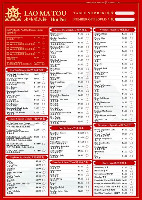 Lao Ma Tou Menu . Originated from chengdu of szechuan, lao ma tou hot pot is one. See restaurant menus, reviews, ratings, phone number, address, hours, photos and maps.