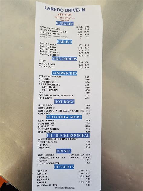 Laredo Drive In Menu . Laredo drive in, naches, washington. Web menu photos contact laredo drive in address: