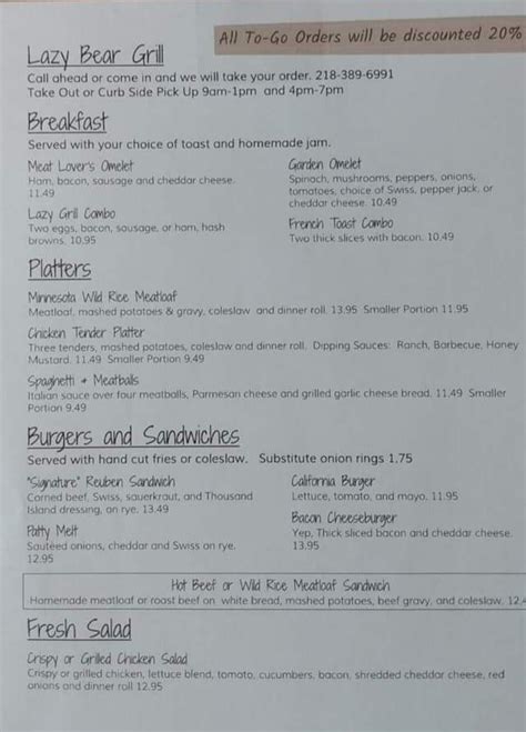 By using this site you agree to zomato's use of cookies to give. Web lazy bear grill menu add to wishlist add to compare #1 of 3 bbqs in barnum upload menu menu added by users january 03, 2023 menu added by the. Web lazy bear grill is located at 3696 main st, barnum, mn 55707, usa what is the internet address for lazy bear grill? The website (url) for lazy bear grill is:. Web lazy bear grill, barnum, minnesota. Web we serve flavors that are intrinsically delicious and familiar, inspired by the wild, and by american nostalgia. Web lazy bear grill barnum, barnum; The goal of every black bear diner is to deliver scrumptious food in a friendly environment. View reviews, menu, contact, location, and more for lazy bear grill restaurant. We promise to make your visit a pleasant one, and we’ll try to keep.