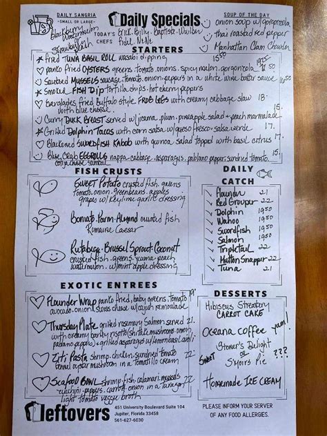 Leftovers Menu Jupiter Fl . Located near abacoa in jupiter, florida. Learn more 451 university blvd, jupiter, fl 33458 seafood $ $$$$ grubhub.com lunch dinner kids drink specials daily specials dessert specials soups onion soup $7.00 crostini, sherry, gorgonzola, parmesan cheese appetizers fried tuna.