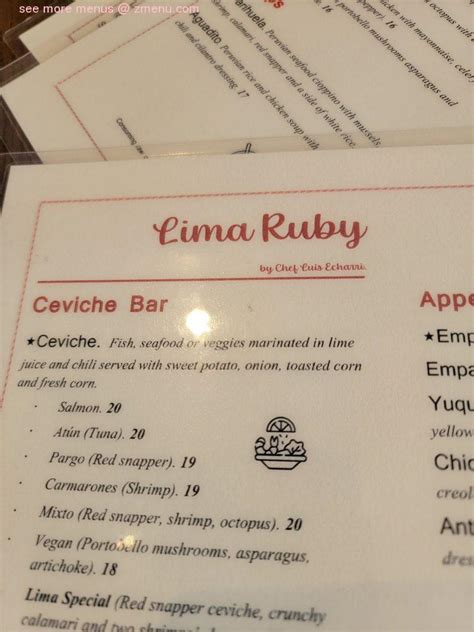 Lima Ruby Peruvian Menu . See unbiased reviews of lima ruby peruvian, one of 305 palo alto restaurants listed on tripadvisor. Explore menu, see photos and read 28 reviews: