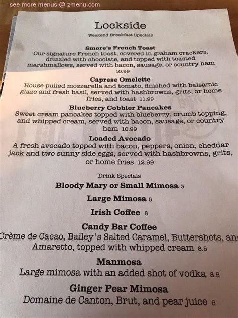 Said my apologies for the late review i brought my wife here for our anniversary in june 2022 the place was recommended by someone at the barbershop. Explore menu, see photos and read 29 reviews: We came back to the next day for. Web we are located in chesapeake, feel free to explore our restaurant menu! The mixed drinks were ok. lockside bar and grill, casual dining american cuisine. Web we fill up quickly. View full menu the classics american* $7.99 2 eggs, bacon, sausage, or country ham, hashbrowns, grits, or home fries, and toast hungry man* $9.29 3 eggs, bacon, sausage, or country ham, hashbrowns, grits, or home fries, and pancakes or french toast steak & eggs* $15.99 You are free to download the lockside bar and grill menu files. Web 44921 george washington blvd suite 100, ashburn, va 20147. Join us for happy hour at the firebar ® or on the patio for drink specials and bar bites. Web menu dinner menu served till 3pm daily.