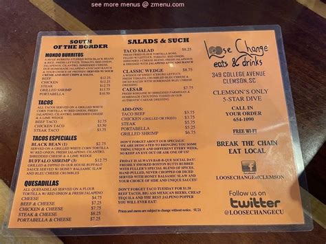 Loose Change Clemson Menu. See restaurant menus, reviews, ratings, phone number, address, hours, photos and maps. A local dive that celebrates everything clemson, sc.