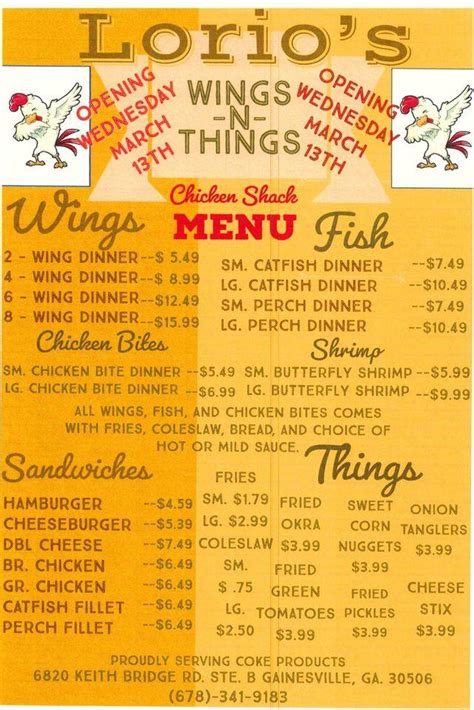 Lorio's Wings-N-Things Menu . Web maxcines wings n things « back to memphis, tn. Menu items and prices are subject to change without prior notice.