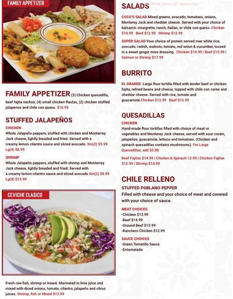 Restaurantguru.com takes no responsibility for availability. Web you may explore the information about the menu and check prices for bigchefs tarabya by following the link posted above. Web the menu for los cucos mexican restaurant may have changed since the last user update. Guacamole salad $8.99 fresh guacamole made table. Dishes are authentic but not traditional with bold, intense flavours and an emphasis on simple presentation acquired through quality. Sirved does not guarantee prices or the availability of menu items. Web the menu is comprehensive and alluring.
