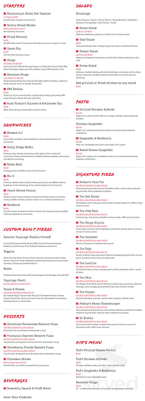 Lost Pizza Menu Brandon Ms . The thick crust pizza is excellent. If you do not receive one, please call the store immediately.