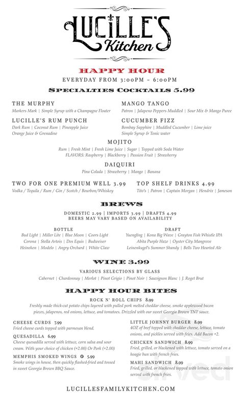 The flavor profiles are spot on and done with. Louis ribs or baby back ribs + four half bbq or alabama chickens + your choice of two double. Web menu is for informational purposes only. Menu items and prices are subject to change without prior notice. 2308 se hawthorne rd d, gainesville. Web lucille’s is a tribute to a legacy of culinary excellence started almost a century ago. Ad view newest & full lucille's menu here! Web lucille's kitchen restaurant austin photos • lucille's kitchen restaurant austin location • lucille's kitchen restaurant austin address • lucille's kitchen. For the most accurate information, please contact the restaurant. This place delivers what i've been missing my whole life in the area.