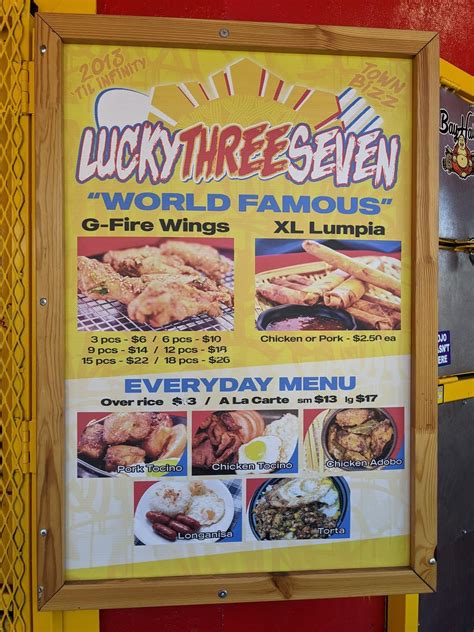 Restaurant menu frequently mentioned in reviews piece gfire wings on fruitvale avenue the lechon paksiw chicken. Web lucky three seven click here to edit subtitle more today's menu about us contact us directions click on link below for facebook page today's menu page is uploaded every morning please check day and date below for accuracy! Fast fresh filipino street cuisine. With mustard seeds, layered with foie gras, enlivened with preserved lemon purée and a confetti of garden vegetables. Google users who visited this place state that the most suitable score is 4.6. We will be closed for labor day!!! Web out of date menu; Web seared rare tuna crusted. Web since lucky three seven opened nine years ago, a handful of other ambitious filipino restaurants have cropped up in oakland, most notably fob kitchen in temescal. Open 11am to 7pm wednesday to sunday and closed on monday and tu.