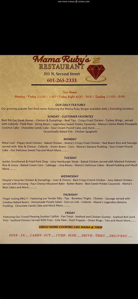 Mama Ruby’s Restaurant Home Brookhaven, Mississippi Menu, Prices