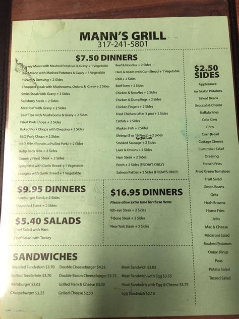 Web mann's grill packed huge, indulgent portions in a neat, super affordable package. This place is well known for its great service and friendly staff, that is always ready to help you. Web mann's grille menu add to wishlist add to compare #98 of 1443 bbqs in indianapolis proceed to the restaurant's website upload menu menu added by users january 04, 2023 menu added by the restaurant owner the restaurant information including the mann's grille menu items and prices may have been modified since the. Come for breakfast, stay for dinner! My boyfriend ordered a double cheeseburger, which ended up being so much larger than we anticipated. Web the menu is packed with homestyle favorites including chicken, pasta, burgers, pulled pork, turkey, meatloaf and salads. Web this restaurant may please you with good peanut butter pie, biscuits and pancakes. This place gets crazy around lunch time. The carry out window made it super easy to call ahead & grab our food when it was ready. Web manns grill incorporated, indianapolis, indiana.