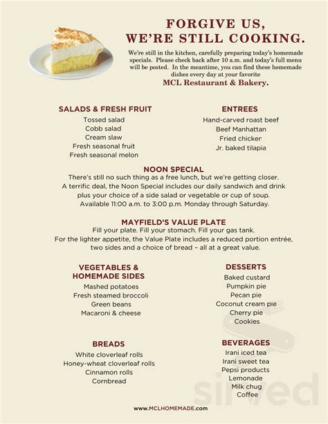 Something for everyone, every day enjoy our famous square fish, chicken fried steak, blackened tilapia, macaroni and cheese, mashed. Order your usual, and we'll deliver to your door. Reuben 6.49 kid's meal kid's meal reduced entree, two sides, & bread (mvp choice of thigh or leg) salads tossed. Web view menu and reviews for mcl restaurant & bakery in avon, plus popular items & reviews. Web mcl restaurant & bakery | the original american comfort food locations menu promos catering gift cards feedback jobs fundraisers contact about terms & conditions. Ad delivered to your doorstep. Web please contact adaaccommodations@chipotle.com if you need assistance or an accommodation due to a disability. Web the menu for mcl restaurant & bakery muncie may have changed since the last user update. Sirved does not guarantee prices or the availability of menu items. Order your usual, and we'll deliver to your door. Your homemade favorites served daily!