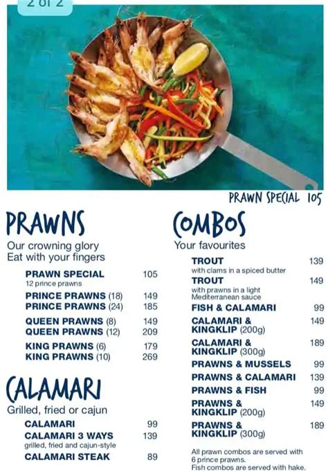 Ocean Basket Wonderpark menù, Pretoria Main Menu Sluurpy