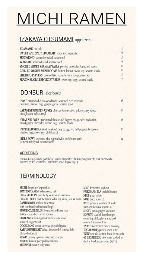Web the menu for michi ramen bar may have changed since the last user update. We serve a lot of tasty japanese foods. Follow texas eats and david elder on facebook and instagram for more food info, pictures, videos and. We offer contemporary and traditional japanese ramen and delightful cocktails in a space dedicated to local artistic. A collaboration between chef drake doepke. Our ramens are made really from. Web ramen bar ichi's menu is here. Share it with friends or find your next meal. We created our dishes based on traditional japanese cooking methods. Sirved does not guarantee prices or the availability of menu items.