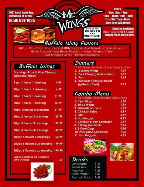 Mr. Wings Inc. Menu . At 3507 n pace blvd, pensacola, fl 32503. Reviews, rating, hours, phone number,.