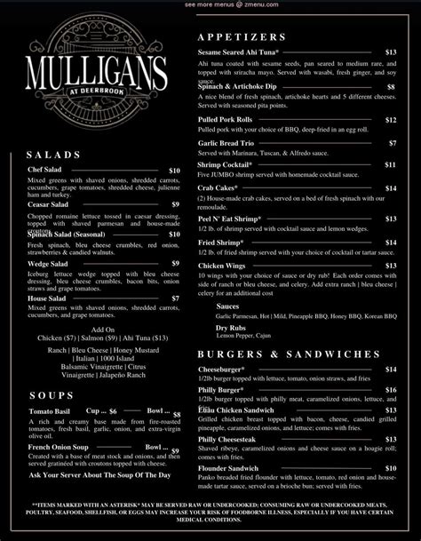 Mulligans At Deerbrook Menu . You may explore the information about the menu and check prices for mulligans at deerbrook by following the link posted above. 203 squankum road, farmingdale, nj.