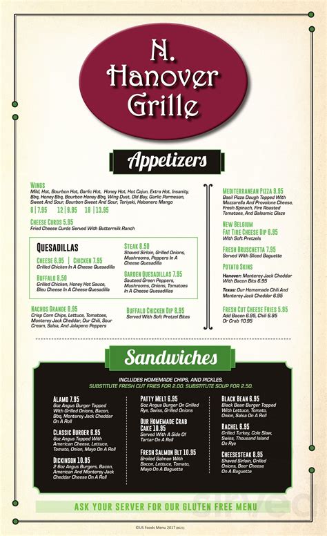 North Hanover Grille Menu . Menu items and prices are subject to change without prior notice. Restaurants near north hanover grille in carlisle