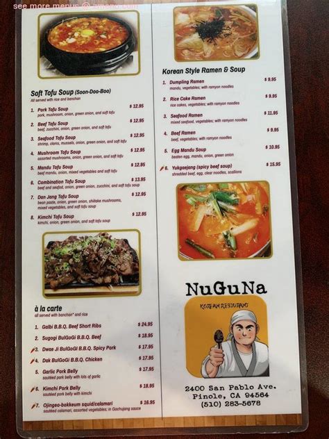 Nu Gu Na Menu. Web view nu gu na online menu at 2400 san pablo ave, pinole, ca 94564. Rate your favorite items on pricelisto to get personalized.