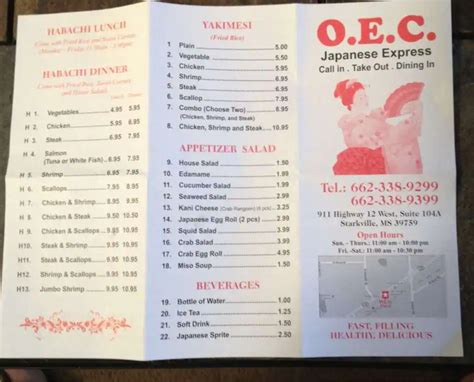 Web o.e.c japanese express | clinton, ms 39056 | menu menu all day menu appetizer / soup / salad yakimesi fried rice yaki noodles sushi rolls *consuming raw fish may be. Web baked and mixed scallops, shrimp, crab meat with mayo on top of california roll. Web #5 of 25 steak restaurants in brookhaven proceed to the restaurant's website upload menu dishes in oec japanese express restaurant features great service friendly staff. Information shown may not reflect recent changes. Our menu is a suggestion for your selection. Web fried dumplings (6) $5.25 20. Steamed dumplings (6) $5.25 21. $8.25 steak rice noodles lg.: By using this site you agree to zomato's use of cookies. Seafood roll (8pcs) baked scallops, shrimp, crab meat and crunch with mayo in.