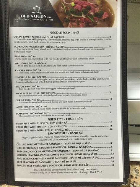 Traditional banh mi $4.95 pork roll, ham and plate. Fresh beef tenderloin shaken on high heat, on top of lettuce, onion, tomato served with steamed jasmine rice. Beef rice bowl $5.25 your choice of spicy sauce or curry. We offer exceptional, award winning thai cuisine, chinese cuisine, malaysian cuisine, &. See our locations page for updated closure information. Web the menu of vietnamese home cooked flavours at the old compass cafe Web amazing meals & great environment. Sirved does not guarantee prices or the availability of menu items. With a variety of appetizers such as spring rolls (freshly wrapped in vietnamese rice cake with full flavor), egg rolls, vegetarian egg roll, coconut shrimp, artichokes hearts etc. Web old saigon special menu.