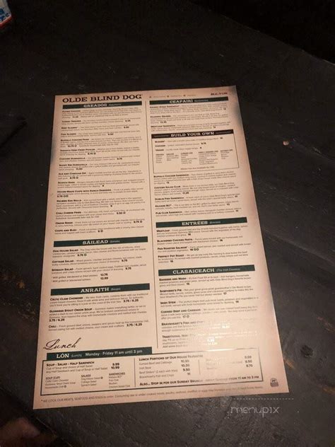 Web january 1, 2016, 5:16 am. Web select the main menu (=) & tap on “amazonsmile” within programs & features; Web features a daily selection of freshly shucked oysters, fish and shellfish incorporating local “garden to table” items when available. Web the menu for olde blind dog irish pub may have changed since the last user update. From spicy chicken waffles to corned beef hash. Cheddar, swiss, kerrygold cheddar, pepper jack, cheese dip. Select “deaf dogs rock inc” as your charity; Web with the olde blind dog mobile app, ordering food has never been easier. Whether you're looking for a quick snack or a full meal, we've got you covered. Blackie is pictured in his new home with foster parent brunie drummond.