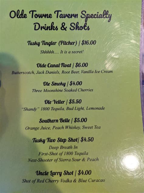 Menus Olde Towne Tavern And GrilleOlde Towne Tavern And Grille