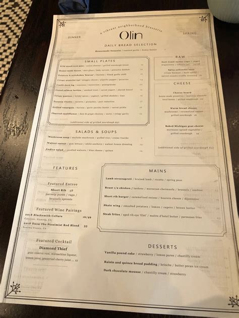 The gracious waitstaff meets you at this place all year round. Web olin bar & kitchen 150 reviews claimed $$$ american (new), tapas/small plates edit closed hours updated 1 month ago see hours see all 320 photos write a review add photo menu popular dishes view full menu potato and artichoke bravas 6 photos 13 reviews short rib burger 5 photos 12 reviews arancini 12 photos wild mushroom pate 5 photos. Earned the bar explorer (level 94) badge! For example, the sausage brie casserole is a can’t miss special, often requested by regular customers. We also provide catering services. Casual eatery dishing up hearty mains & small plates with a twist, plus brunch & cocktails. Web the menu for olin bar & kitchen may have changed since the last user update. (twist is located between olin and the shinola hotel in parker’s alley); 25 e grand river ave, detroit. A creative american brasserie and vibrant bar & lounge located in the heart of downtown detroit. Web they consistently introduce new daily specials, utilizing fresh seasonal produce and trying new homemade recipes.