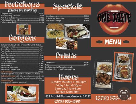 Onetaste Pleasant Grove Menu. Onetaste in pleasant grove, 833 park road, pleasant grove, al, 35127, store hours, phone number, map,. Please let us know how we can help.