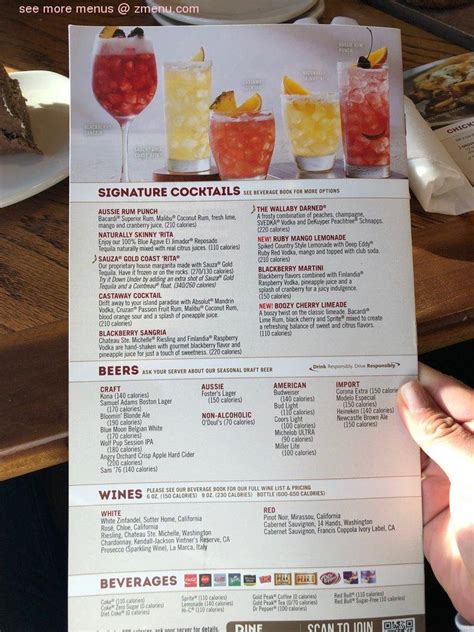 Best known for grilled steaks, chicken and seafood, outback also offers a wide variety of crisp salads and freshly made soups and sides. Our unbeatable steak cuts are complemented by delicious choices of chicken, ribs, seafood, and. Web stuffed with fresh grilled chicken breast, sautéed mushrooms, bacon, melted cheeses and honey mustard sauce. We're known for high quality, juicy steaks with your. Seafood, gluten free, diner,steak sms email print directions view menu. Serve it up with a dash of aussie hospitality, and you’ve got all the makings of a great experience you’ll want to share with your friends, time and time again. Serve it up with a dash of aussie hospitality, and you’ve got all the makings of a great experience you’ll want to share with your friends, time and time again. New creations and grilled classics are made from scratch daily using only the highest quality ingredients sourced from around the world.…. Web outback steakhouse starts fresh every day to create the flavors that our mates crave. Web 1 2 3 4 5 6 7 start your order now pickup/delivery (delivery only available from select locations) give gift cards order now serving those who serve learn more offers & daily specials view offers make dinner delicious tonight see dinner menu open for lunch (hours vary) see lunch menu zip code