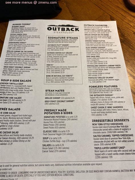 Web menu is for informational purposes only. Sirved does not guarantee prices or the availability of menu items. New creations and grilled classics are made from scratch daily using only the highest quality ingredients sourced from around the world.…. Outback steakhouse $$ • steak house Drover's ribs & chicken platter • 1850 cal. The home of juicy steaks, spirited drinks and aussie hospitality. Enjoy steak, chicken, ribs, fresh seafood & our famous bloomin' onion. Menu items and prices are subject to change without prior notice. Served with two freshly made sides. Web order online at marrero, marrero. Web menu is for informational purposes only.