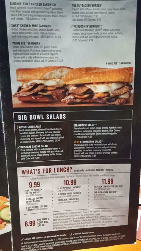 Find our special lunch menus which feature such things as noodles that will have you raving about our fine food. Outback steakhouse menu > outback steakhouse nutrition >. Place orders online or on your mobile phone. Web outback steakhouse menu last update: Find our special lunch menus which feature such things as noodles that will have you raving about our fine food. We offer some of the best australian food around! Web find outback steakhouse at 901 montlimar dr, mobile, al 36609: Web outback steakhouse starts fresh every day to create the flavors that our mates crave. Web the home of juicy steaks, spirited drinks and aussie hospitality. Get the latest outback steakhouse menu and prices, along with the restaurant's location, phone number and business hours. Best known for grilled steaks, chicken and seafood, outback also offers a wide variety of crisp salads and freshly made soups and sides.