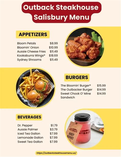 New creations and grilled classics are made from scratch daily using only t…… read more ask the community ask a question Best known for grilled steaks, chicken and seafood, outback also offers a wide variety of crisp salads and freshly made soups and sides. Web menu is for informational purposes only. Web view the online menu of outback steakhouse and other restaurants in salisbury, maryland. For the most accurate information, please contact the restaurant directly before visiting or ordering. The home of juicy steaks, spirited drinks and aussie hospitality. Learn more about offering online ordering to your diners. Enjoy steak, chicken, ribs, fresh seafood & our famous bloomin' onion. Web outback steakhouse starts fresh every day to create the flavors that our mates crave. Find our location in salisbury off of ocean highway near by home depot and the courtyard by marriott.