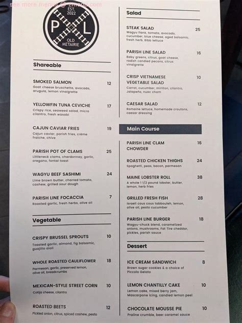Parish Line Bistro Menu . It covers a lot of ground with shareable dishes, whole roasted. Web if your first instinct here is to grab a drink and kick back, wilson’s menu can talk you into a full meal.