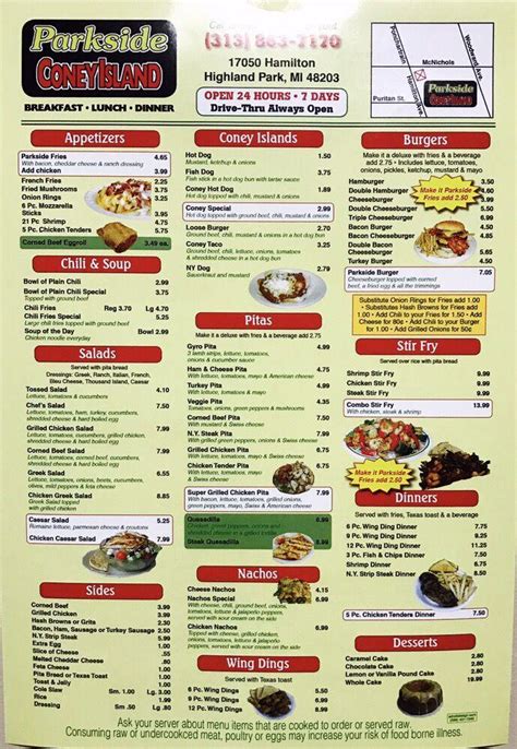 Web view the online menu of parkside coney island and other restaurants in highland park, michigan. Web up to $5 cash back parkside coney island menu highland park • order parkside coney island delivery online • postmates too far to deliver parkside coney island 3.8 (100+. Web two cheese coneys, regular fries or tots & reg fountain drink. Web parkside coney island 1photo menu main menu8 main menu chili and soup bowl plain chili 2.35 chili fries 2.25 chili fries special 4.25 large chili fries topped with ground beef. Web 6 mile coney island main menu chili and soup bowl plain chili $2.35 bowl plain chili special $2.35 chili topped with ground beef chili fries $2.25 large chili fries $3.00 chili. Web up to $3 cash back parkside coney island. Prices are found average here. Web parkside coney island is well known for its great service and friendly staff, that is always ready to help you. Web american deli menu applebee's menu arby's menu bojangles' menu burger king menu captain d's seafood menu carl's jr. Web with cheese, chili, ground beef, onion ,tomato ,lettuce, and jalapeño peppers, served with sour cream on the side.