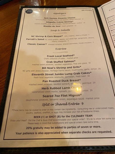 Web parrott's on eleventh, morehead city, north carolina. They offered several desserts including crème brulee and an apple crisp. Web the menu for parrott's on eleventh may have changed since the last user update. Web for entrées we were delighted by their rib eye, salmon, roasted duck breast and many others. They do offer a limited children's menu if you require this. Web the restaurant information including the parrott's on eleventh menu items and prices may have been modified since the last website update. You are free to download the parrott's on eleventh menu files. Web it's worth visiting parrott's on 11th because of good scallops, blt and salmon. Overall we were extremely satisfied with our meal and experience at parrot's on 11th. Enjoy fine dining in a historic home with storied past.