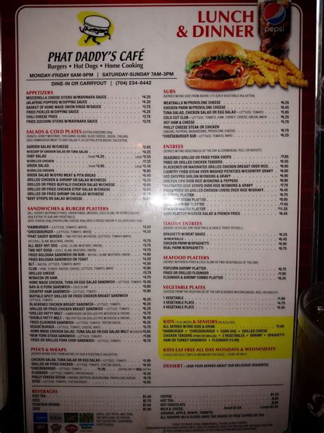 Can't wait to try another menu item. *family owned home styled cooking *full breakfast & lunch menu *lunch specials. Web ranch, honey mustard, thousand island, blue cheese, greek, italian. Web phat daddy's cafe charlotte; Appetizers | salads and cold plates | sandwiches and burger platters. 2741 old monroe rd, stallings, nc 28104. As a senior, there are. Web top reviews of phat daddy's cafe. Select your favorite menu : Subs are gigantic and so delicious.