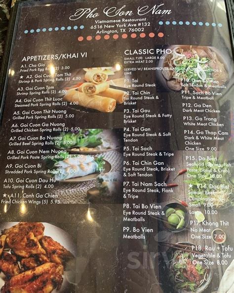 They are crispy but not too crispy. Pepper, coke, sprite, diet coke. Menu items and prices are subject to change without prior notice. Information shown may not reflect recent changes. Get even bigger portions for the whole gang! 2010 in haltom city, tx relocated to arlington, tx 76010 in 2013 relocated to arlington, tx 76002 in 2015 Web pho dac biet $8.50 n2. For the most accurate information, please contact the restaurant directly before visiting or ordering. 2010 in haltom city, tx relocated to arlington, tx 76010 in 2013 relocated to arlington, tx 76002 in 2015 Web pho son nam vietnamese restaurant.