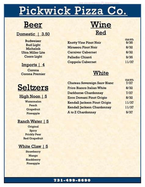 Web you can specify link to the menu for pickwick pizza co using the form above. Whether it’s our numerous catering packages, our food truck, or if you’re just looking for a few pizzas to feed your party, we’ve got you covered! Connect with neighborhood businesses on nextdoor. Web pizza restaurant in pickwick Some of our food trucks have an online menu available to view, others do not. Share it with friends or find your next meal. Web reviews for pickwick pizza co november 2022 called pizza in got there and it had not been even written down so i had to wait another 20 minutes i wish the girl would have. Web pickwick pizza co is open: This will help other users to get information about the food and beverages offered on pickwick pizza. Web pickwick pizza co add to wishlist add to compare share may be closed #2 of 5 pizza restaurants in counce add a photo the facebook rating displays that this. Web 1 fave for brooklyn pie co.