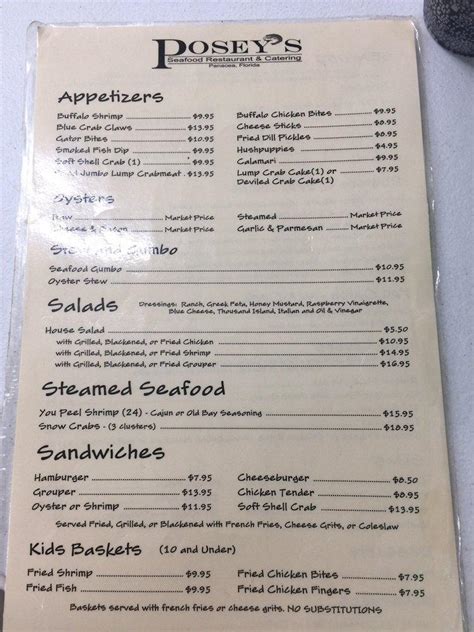 Web connect with paisano’s pizza. Web menu posey's restaurant panacea fl. #5 of 17 places to eat in panacea. Web menu see menu write a review for posey's dockside cafe share your experience! Web menu at posey's up the creek steam room restaurant, panacea posey's up the creek steam room menu proceed to the restaurant's website upload menu menu added by users january 04, 2023 menu added by the restaurant owner november 15, 2022 menu added by users september 29, 2022 Posey's steam room & oyster bar, panacea, florida. A listing on allmenus.com does not necessarily reflect our affiliation with or endorsement of the listed restaurant, or the listed restaurant's. By using this site you agree to zomato's use of cookies to give you a personalised experience. Check out your favorite panera meals and view our full menu of breakfast, salads, sandwiches and more. Check with this restaurant for current pricing and menu information.