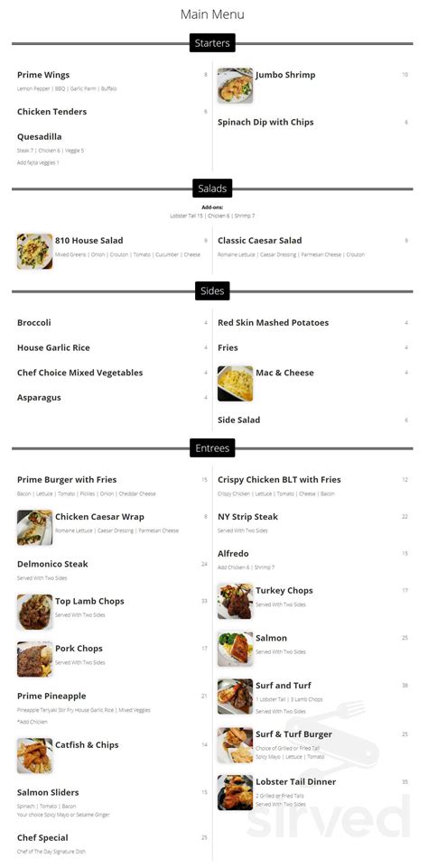 Prime Eight Ten Menu . No delivery fee on your first order! Web prime eight ten is located in genesee county of michigan state.