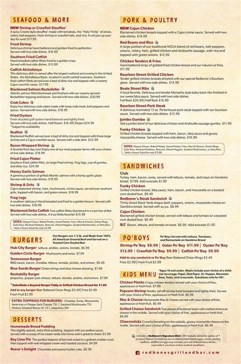 Shrimp cocktail shooters (min 50) below items minimum of five dozen: Bbq, buffalo, garlic parmesan, tn whiskey glaze or cajun alfredo. Web redbone's steak sandwich and fries thinly sliced stock yards angus beef, peppers, onions, mozzarella cheese on gambino bread. Crawfish dip with bread chips; Bringing together cajun classics, american favorites, and fresh seafood offerings, our menu offers a world of flavors at your fingertips and a kick around every corner. Served with a jus and fries. Loaded potato soup $4.49 a hearty delight made from scratch, topped with cheese, bacon, and green onions. Check out our best lists for mexican, asian or italian in jackson. Web © 2023 by chef catering. Web view the online menu of redbones grill and bar and other restaurants in jackson, tennessee.