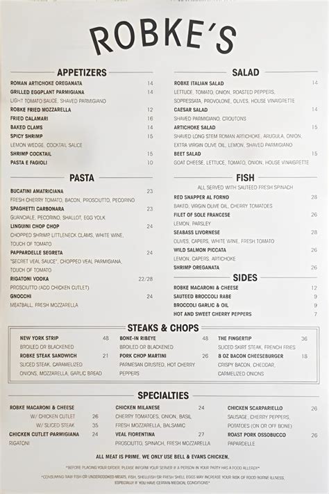 Robke's Lunch Menu . Web restaurant menu frequently mentioned in reviews red snapper alforno 25a shrimp oreganata livornese chicken scarpariello fried capellini cakes the bucatini. $$ • italian, american, seafood.