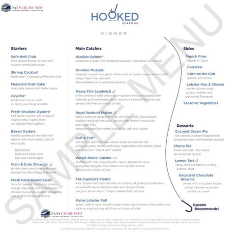 Royal Caribbean Hooked Menu . Succulent and crunchy batter fried scallop, shrimp, cod, calamari, and clam strips. Royal caribbean uses dynamic pricing and.