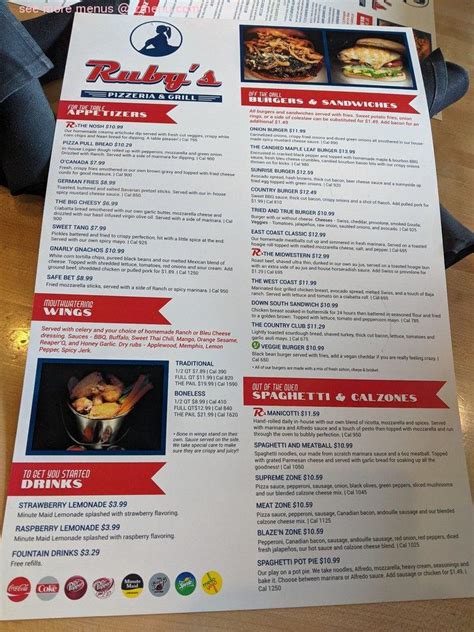 Want to eat at ruby's right now? Sign up for special offers! Want to eat at ruby's right now? I've eaten here many times and as always, i wasn't dissapointed. Web our menu includes pizza, burgers, wings, and appetizers with a steak special friday thru sunday. Web a family friendly casual dining experience. Web ruby's menu and prices. We feature a kid's menu and desserts. View the menu, check prices, find on the map, see photos and ratings. Web view full beer menu with prices for ruby's pizzeria & grill , including 13 taps. Our menu includes pizza, burgers, wings, and appetizers with a steak special friday thru sunday.