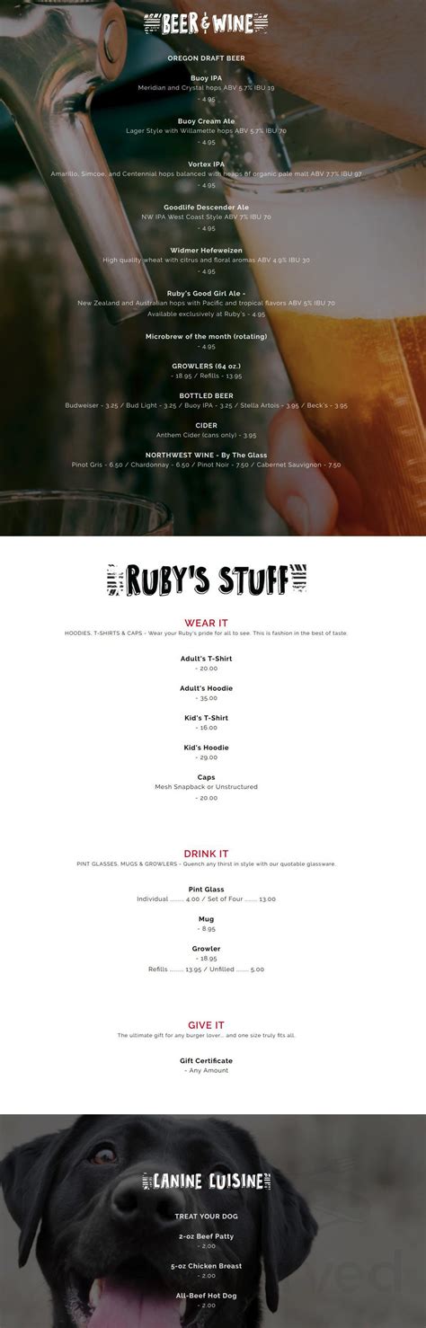 Ruby's Roadside Grill Menu. Web ruby's roadside grill, located in seaside, or, is a casual american eatery that serves up a variety of soups, salads, burgers, hot dogs and more. Web enter your location below to see our menu join our email list for special offers!