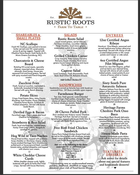 Rustic Roots Posts Bunn, North Carolina Menu, Prices, Restaurant