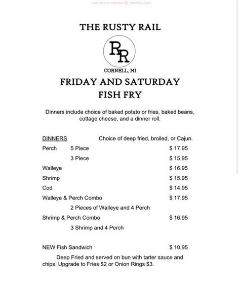 Web kids menu 12 & under • all kid’s meals • served with french fries or kettle chips l 6.00 except for mac & cheese choose hamburger* • cheeseburger*• chicken* strips (3)•. Web the inside of rusty rail is something you'd expect in a major city such as nyc or la but dropped into the small country town of mifflinburg. Join us every saturday and sunday for the very best of weekend brunches. Web kids menu 12 & under • all kid’s meals • served with french fries or kettle chips l 6.00 except for mac & cheese choose hamburger* • cheeseburger*• chicken* strips (3)•. Web rusty rail brewing company @rustyrailbrewco · brewery shop on website rustyrailcompanystore.com more home menu photos videos menu business info. Every small detail was thought out. Web double patties, caramelized onion, bibb lettuce, tomato, pickles, american cheese, 1000 island dressing.