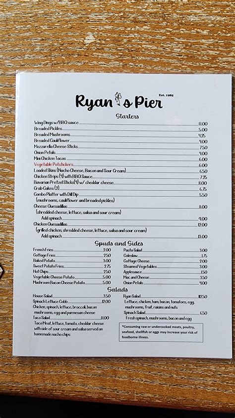 Denice frank a month ago on google. Web ryans pier « back to aroma park, il. Over 30 years of good food, fresh beer, and great friends! Menu items and prices are subject to change without prior notice. Web view the menu for ryan's pier and restaurants in aroma park, il. Ryan's pier is a family owned restaurant in aroma park, il conveniently located right off the kankakee river. You are free to download the ryans pier menu files. My husband loved the burgers. Lettuce, chicken, ham, bacon, tomatoes, egg, mushrooms, fruit, raisins and nuts. Web ryan's pier located in aroma park.