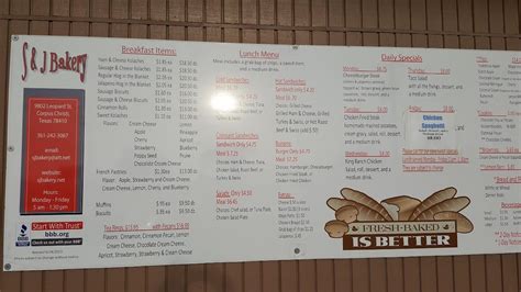 Grab bag of chips, a sweet item and a medium drink. Closed for holiday vacation until january 9th. Web s & j bakery, corpus christi, texas. Lettuce, tomatoes and a pickle spear. Meal includes grab bag of chips, or french fries (extra $.50), a sweet item which includes any of the baked items available that day, & medium drink burgers: Sirved does not guarantee prices or the availability of. Ham and cheese, chicken salad, turkeyand swiss, roast beef or tuna salad choice of bread: The menu for s & j bakery may have changed since the last user update. 12,323 likes · 19 talking about this · 4,550 were here. Web s & j bakery menu has been digitised by sirved.